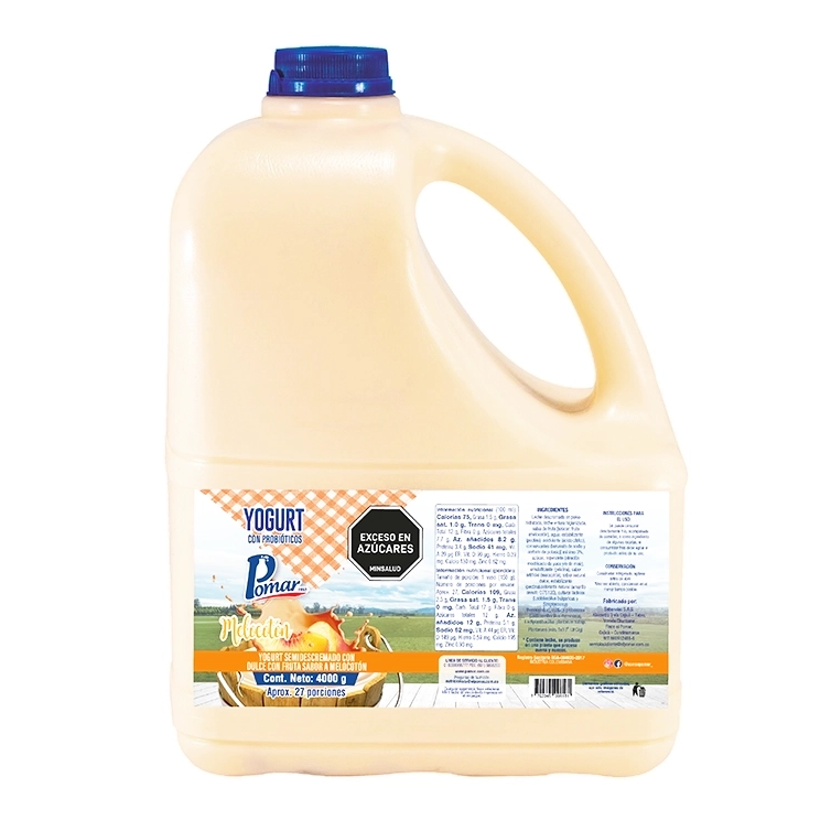 Yogurt Semi Melocotón Pomar 4000ml. Producto lácteo marca Pomar, ideal para el consumo diario por su calidad y sabor.